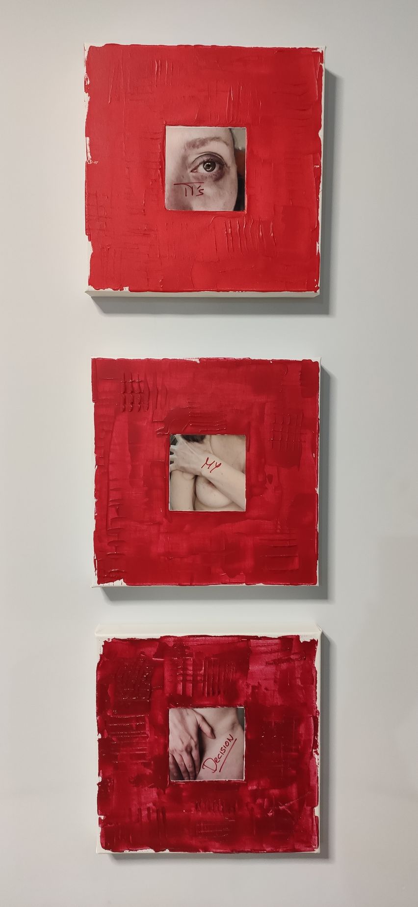 Trittico contro la violenza sulle donne. Tre quadri 30x30 l'uno.
