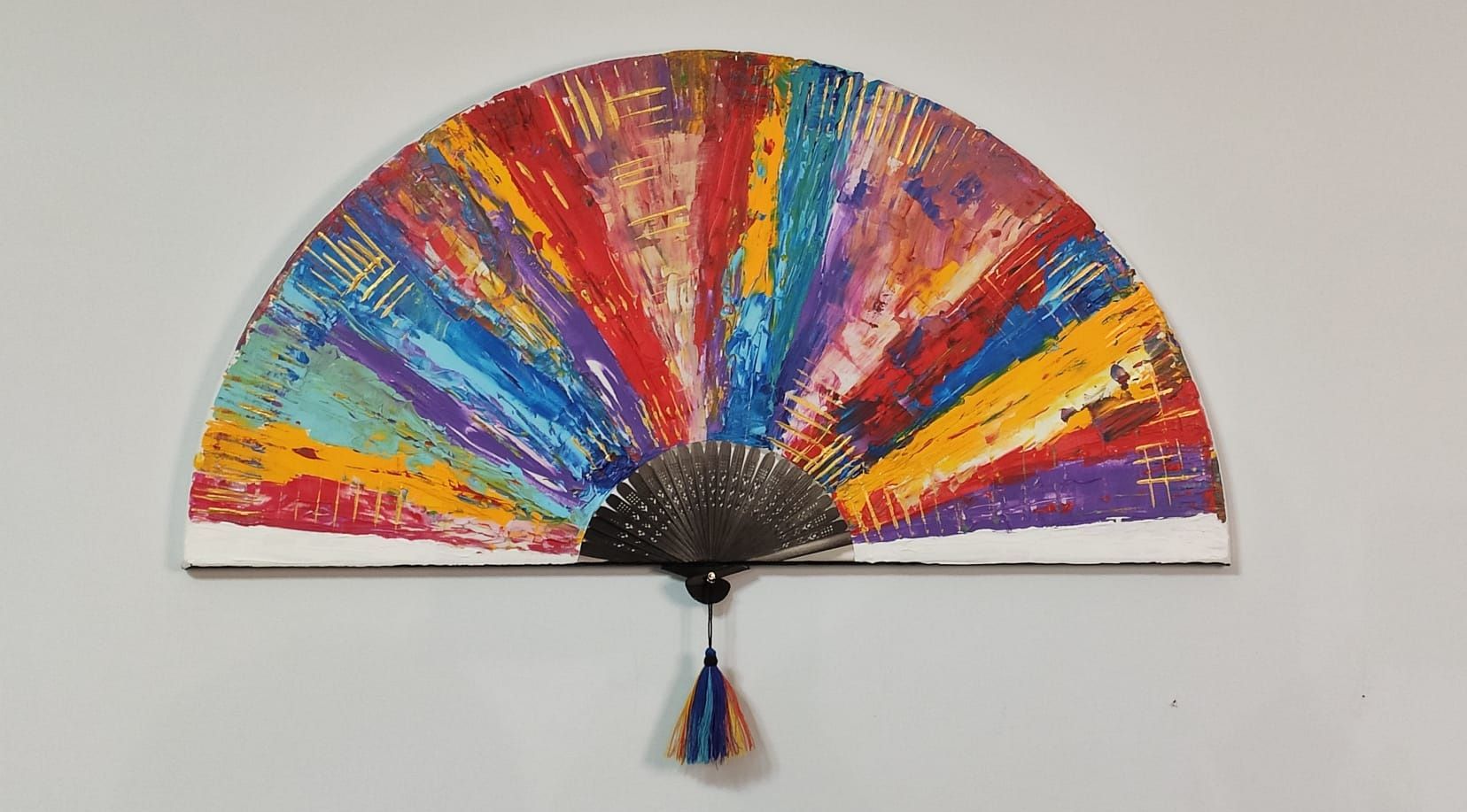L'opera ha anche un pezzo che esce fuori di legno e nappa per dare il senso di ventaglio.