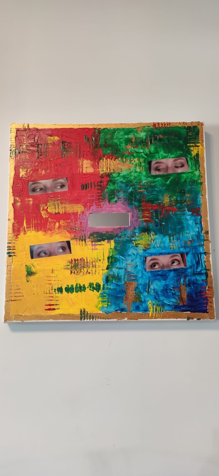 Tecnica mista: acrilico, fotografia e specchio.